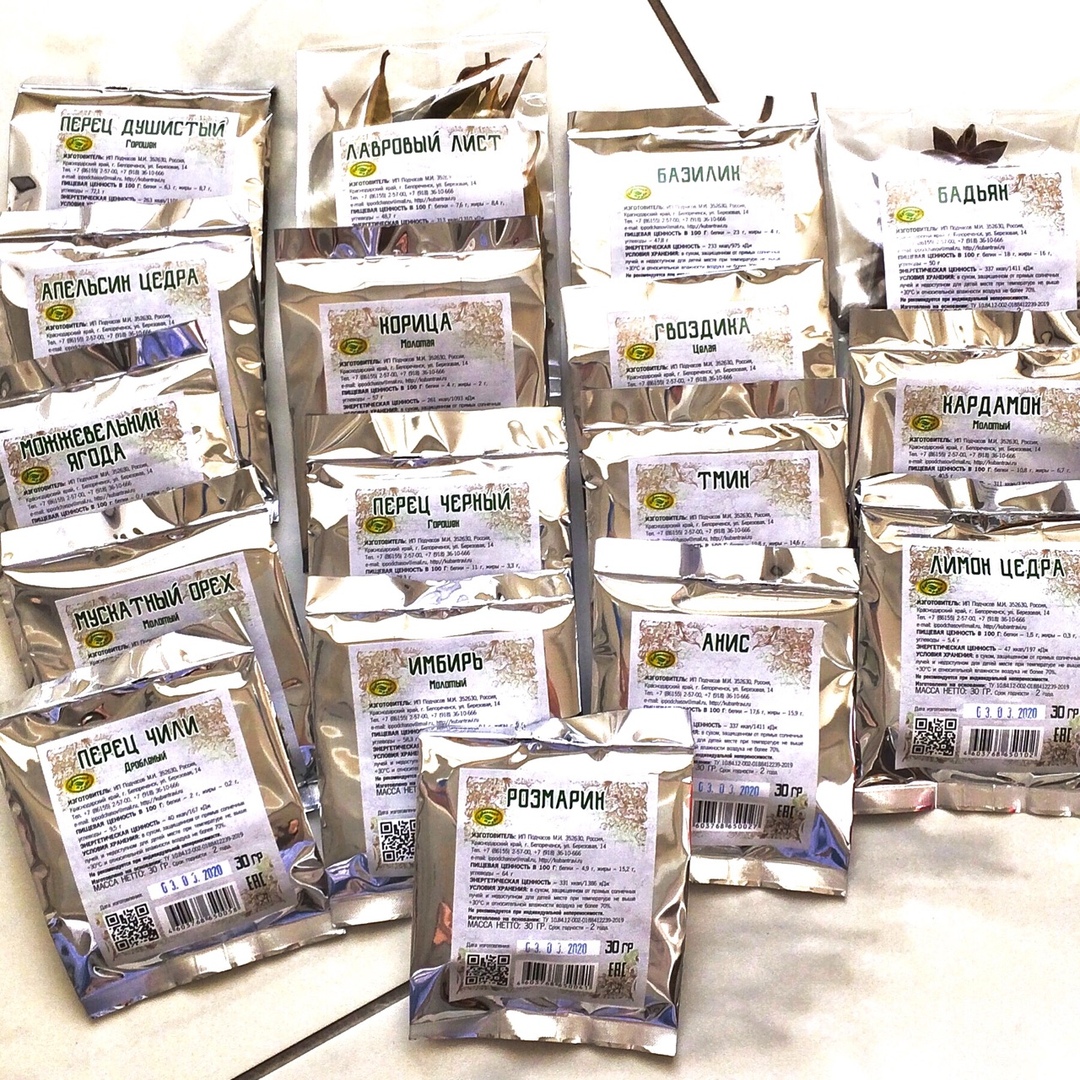 Теперь в нашем постоянном ассортименте есть 16 видов специй фасовкой 30 гр. и лавровый лист - 10 гр. Актуальный ассортимент и цены на наши специи всегда доступны на нашем сайте в соответствующем разделе :